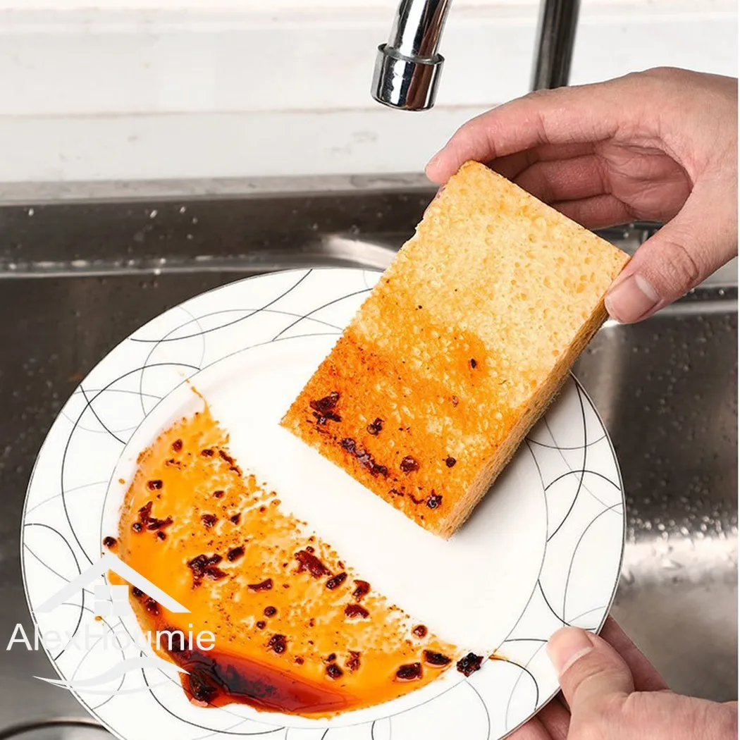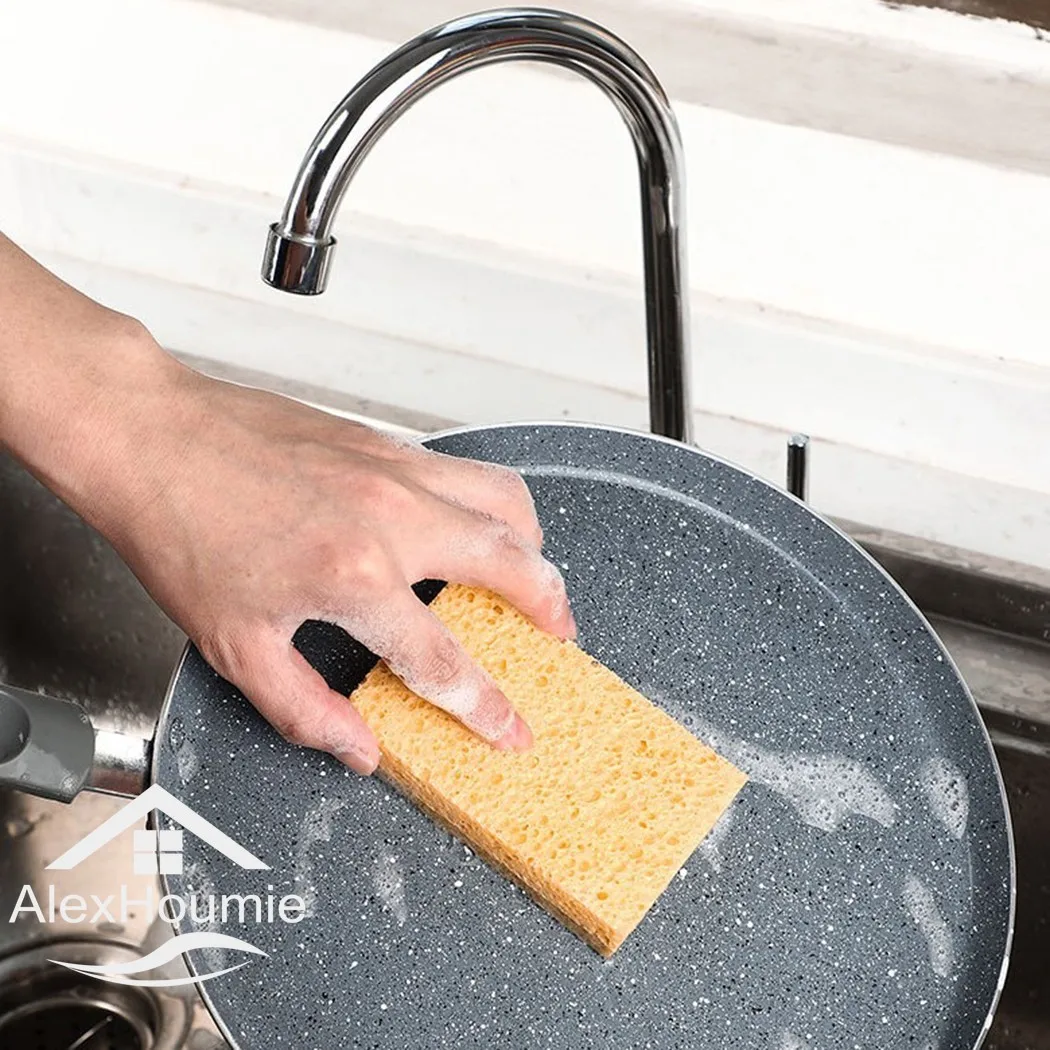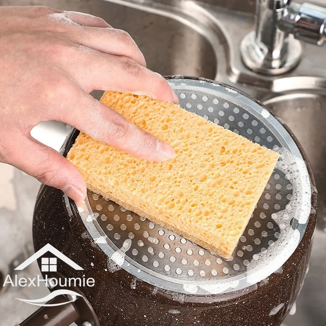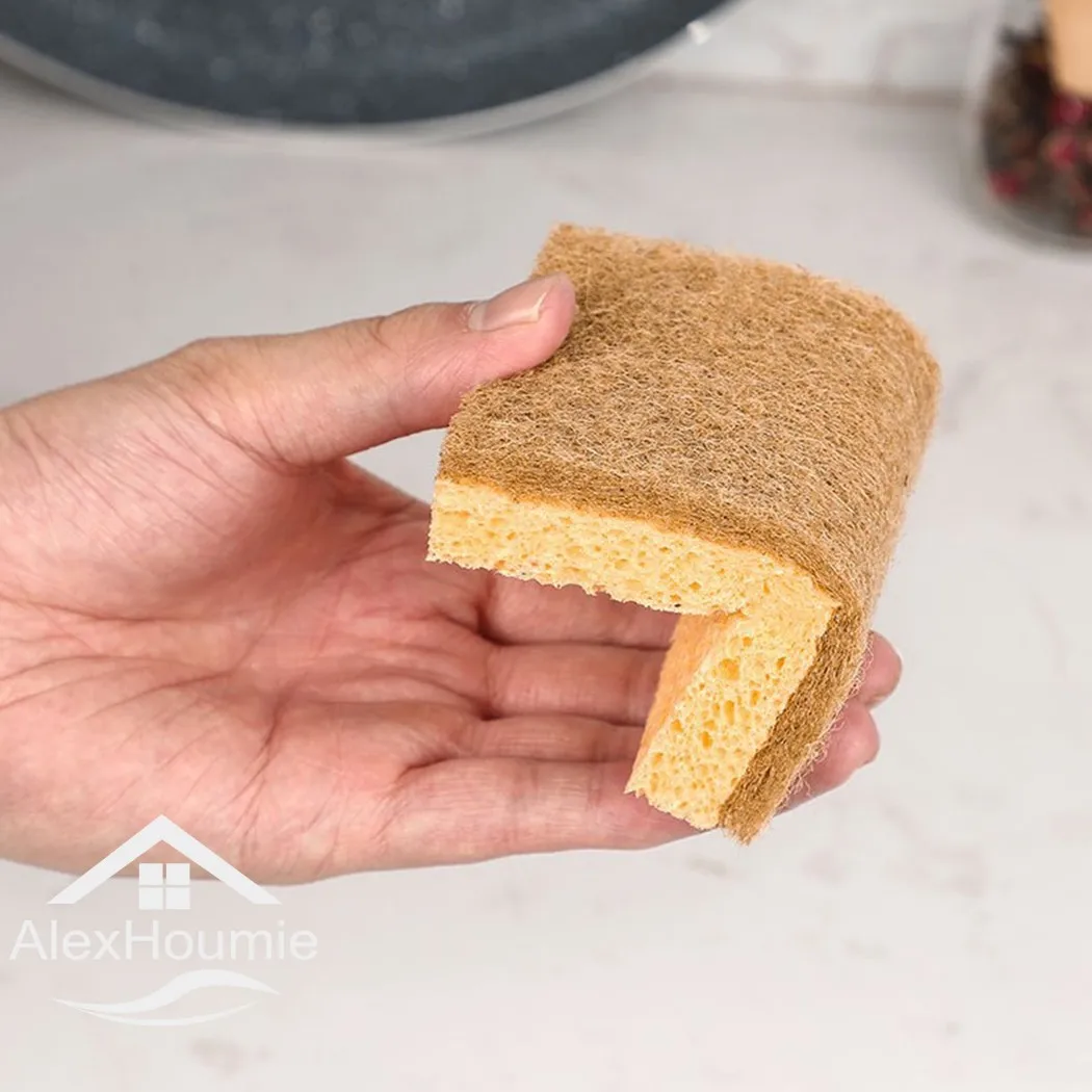 DURABLE AND TOUGH SCRUBBING: Scour and scrub through even the toughest grease and stuck-on food with ease. Our natural dish sponge is sturdy and well made. A tough but non-scratch scouring pad alleviates hard tasks and chores like scrubbing pots & pans, cleaning walls, and washing the floor.