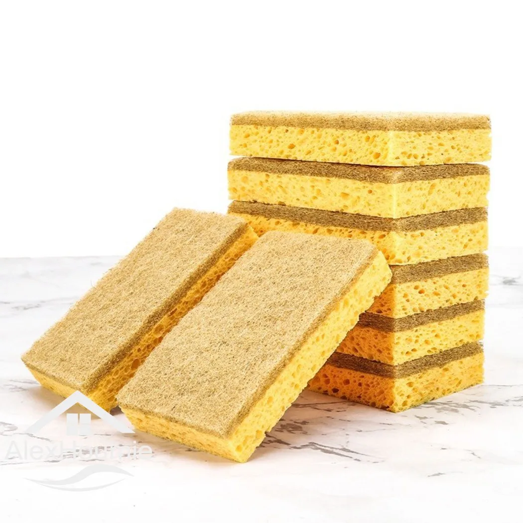 10 Pack Wood Pulp Cotton Scouring Pad Eco Biodegradable And Compostable Kitchen Sponge With Scrub Dish Towel